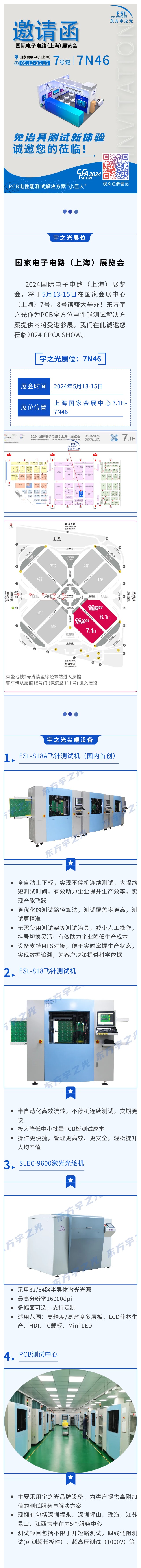 邀请函丨【引领电测新潮流】东方宇之光携“免治具电性测试产品及解决方案”诚邀您参加2024 CPCA SHOW(中国·上海)